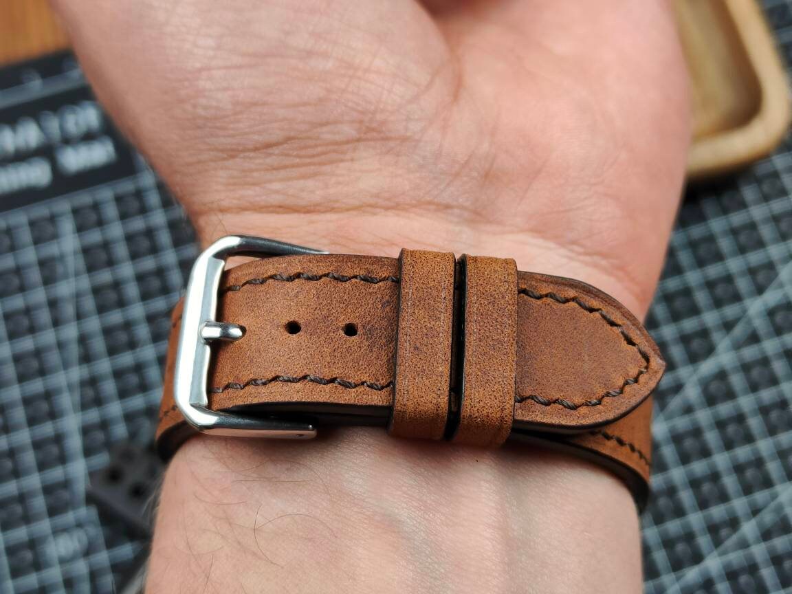 Watchbands from leather, made by me. Everyone is handmade, sewed by hands with strong threads. I use only genuine Italian leather. All straps I make with my own hands from the begining to the final look. I will be glad to do for you.
